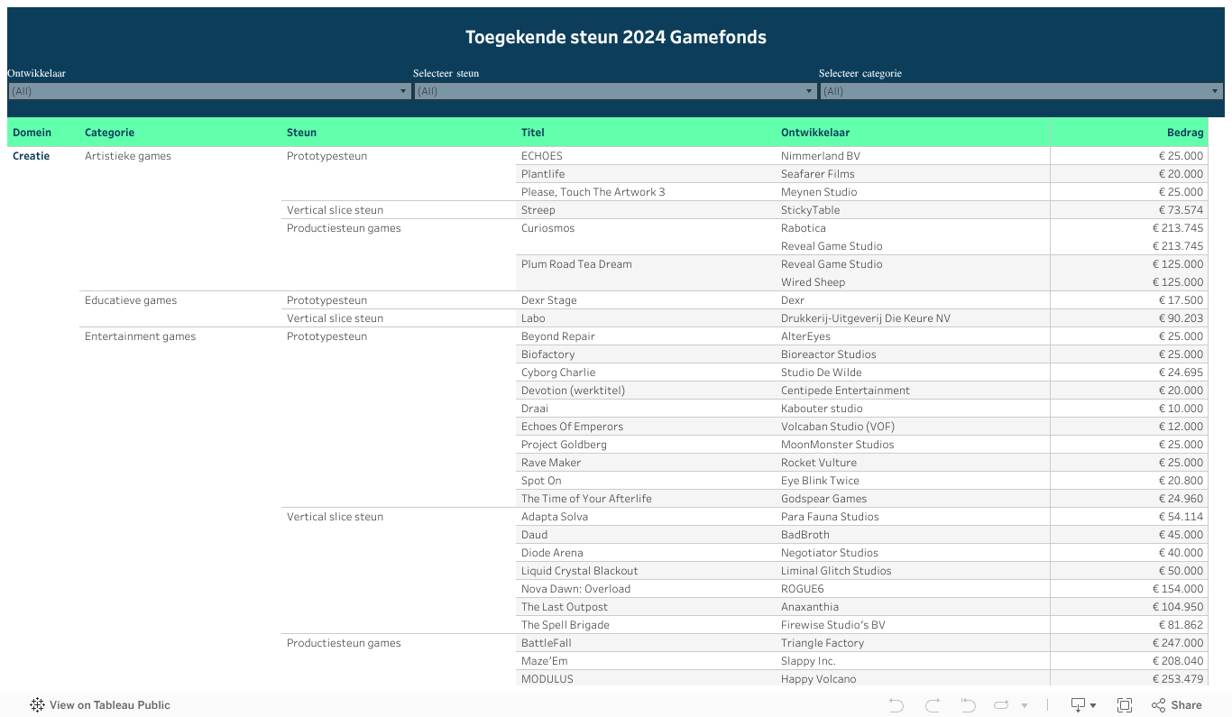 Jaarverslag 2024 VAF/Gamefonds Toegekende Steun